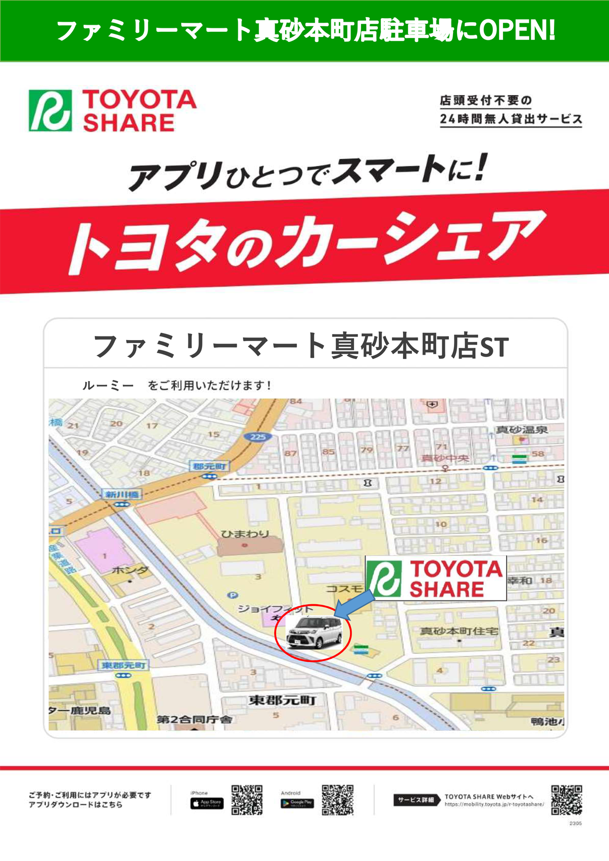 > お知らせ:真砂本町店ファミリーマートさんにてカーシェアをスタートしました!
