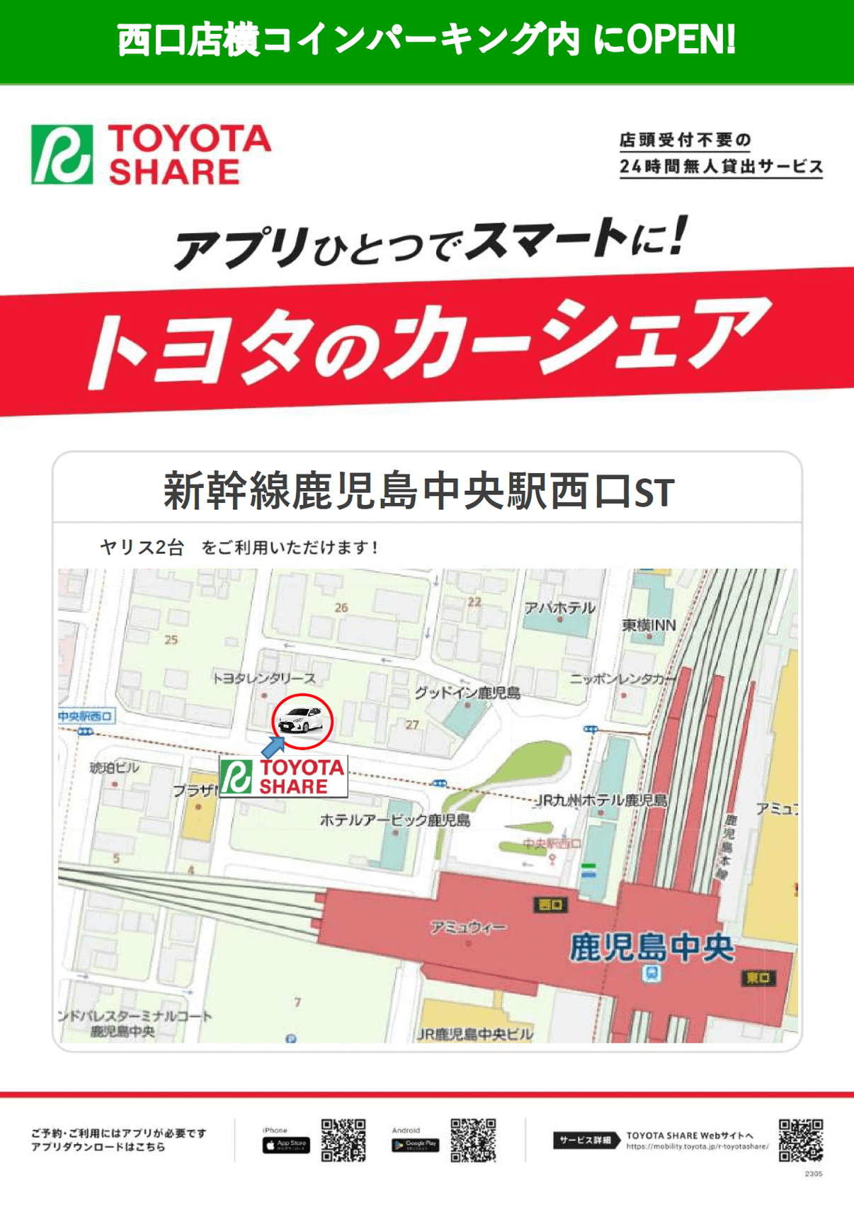 > お知らせ:新幹線西口店 隣にカーシェアを本日(5/9(金)10:00)スタートしました!